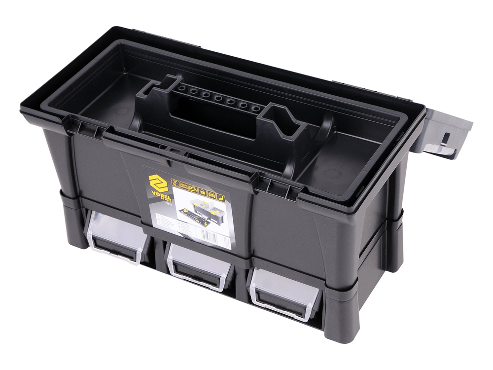 p>Cutie de plastic pentru scule de 20", cu 3 compartimente de stocare. Dimensiune 52,5x256x32,5 cm. Capacitatea de incarcare a cutiei este max 25 kg, iar a modulului suplimentar de 3 kg. In capacul de sus cutia este prevazuta cu 4 organizatoare cu capac. Pe partea laterală a cutiei se află mânere de transport convenabile. Modulul inferior este echipat cu 3 compartimente de depozitare 78831 tip S, cu o dimensiune de 116x161x75 mm fiecare. Containerele au de asemenea un capac de 78832 pentru a preveni rasturnarea în timpul transportului./p>