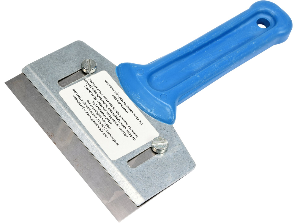 Răzuitor de vopsea cu lamă înlocuibilă și mâner confortabil din plastic.