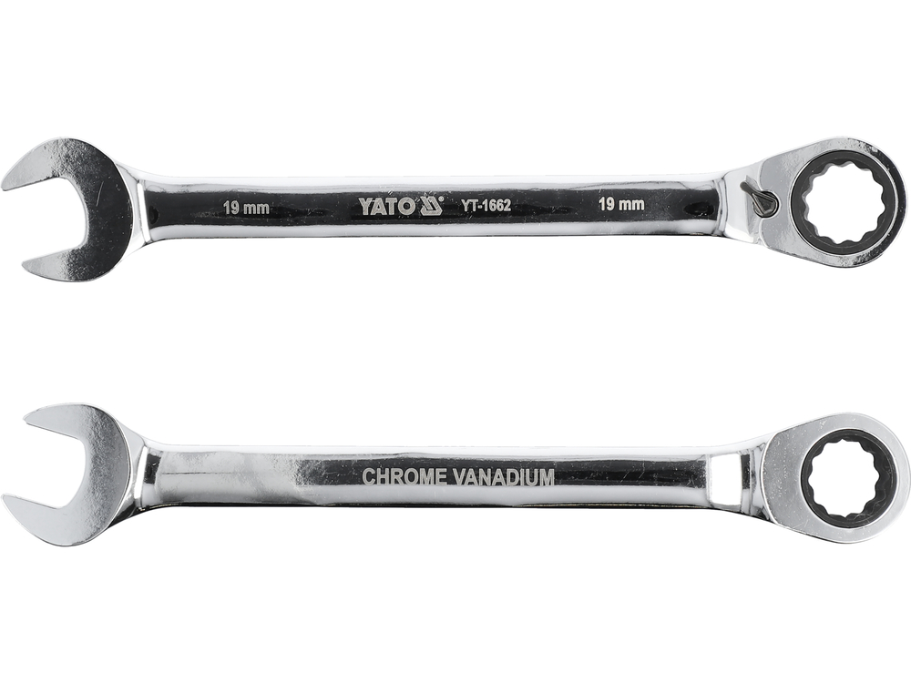 • YT-1662 - CHEIE COMBINATĂ CU CLICHET 19MM - Yato - Cheie combinata cu clichet mecanism 72 dinti lungime totala 245mm