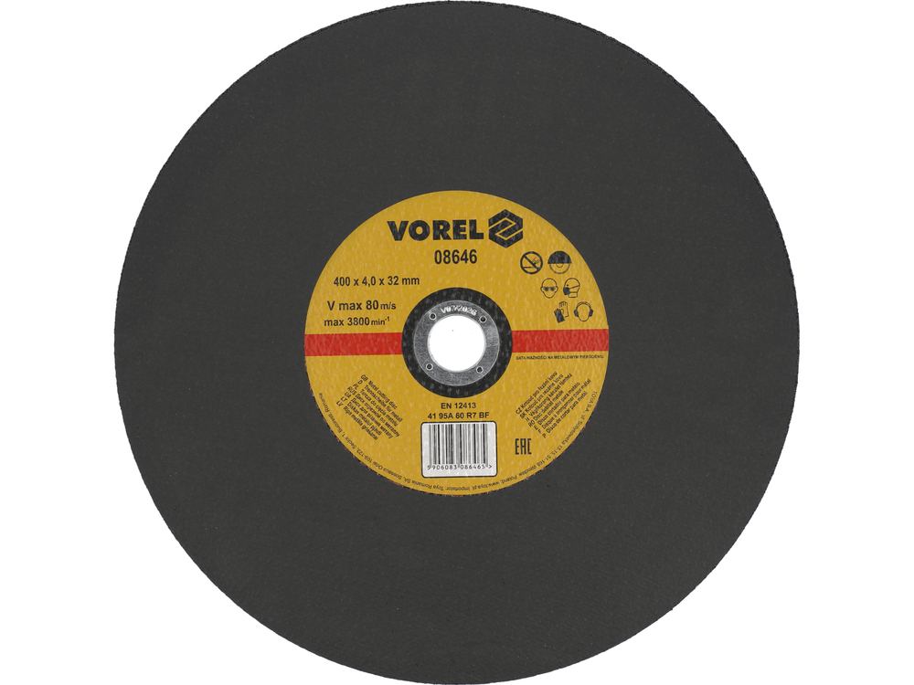 • 08646 - DISC TĂIERE METAL 400X4X32MM - Vorel - Fabricat din corindon cu granulație medie discul este proiectat pentru tăierea metalului. Diametrul gă