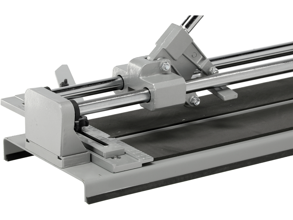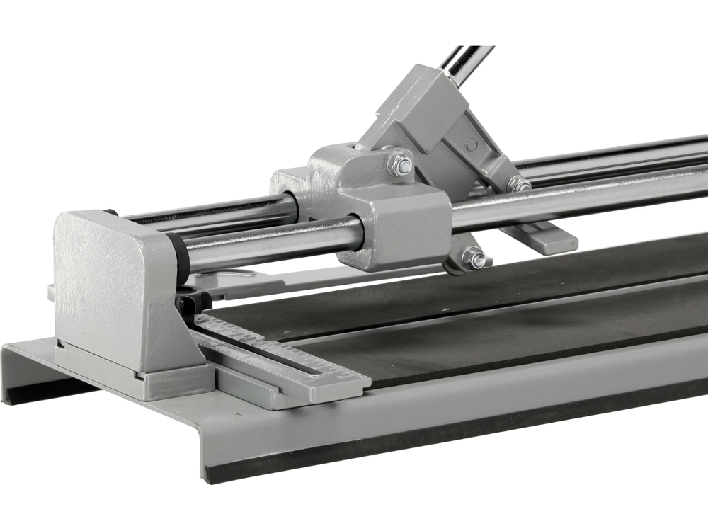 Masina de taiat plăci ceramice de foarte buna calitate cu o lungime maxima de taiere de 600 mm, cu baza stabila din tabla groasa de otel, care este acoperit cu un strat de micro-cauciuc tehnic. Raportorul mobil montat pe blat permite tăierea plăcilor la orice unghi. Dispozitivul este echipat cu o roată de tăiere cu dimensiuni de 22 x 6 x 2mm realizată din carburi cimentate special întărite, montata pe două ghidaje paralele care permit o tăiere stabilă și precisă.
