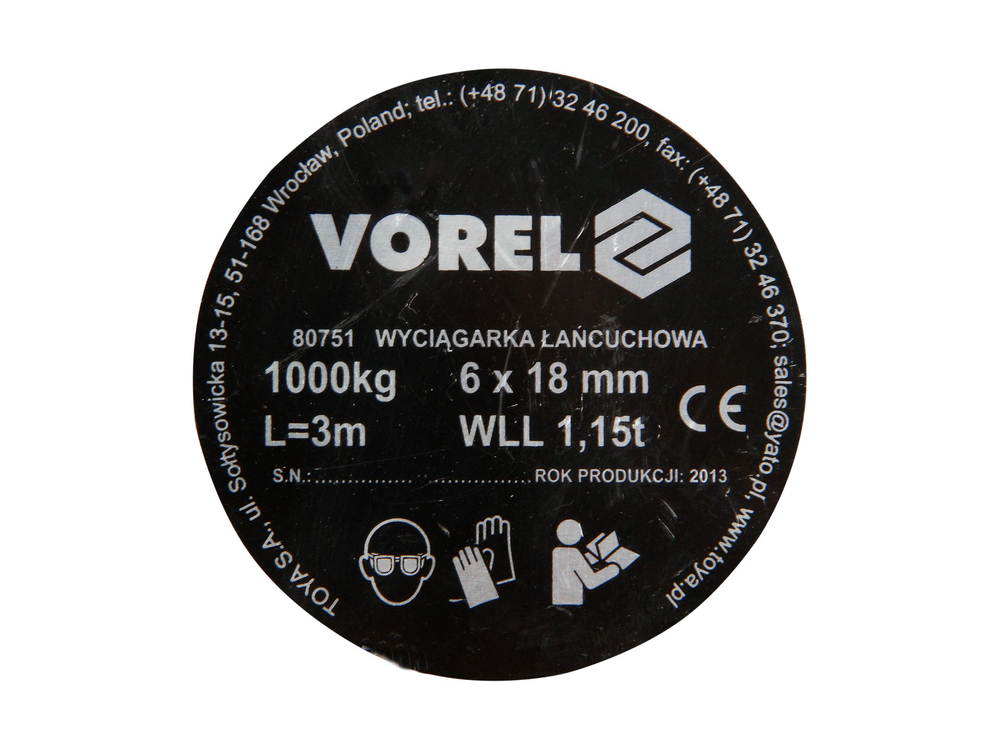Scripete cu lanț care poate ridica până la 1000 kg. Legăturile calibrate din oțel de înaltă calitate au o rezistență la tracțiune semnificativă și sunt foarte rezistente la uzură. Dispozitivul este echipat cu un cârlig de siguranță care are un dispozitiv de blocare pentru a preveni declipsarea încărcăturii.