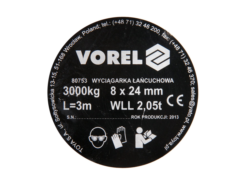 Scripete cu lanț care poate ridica până la 3000 kg. Legăturile calibrate din oțel de înaltă calitate au o rezistență la tracțiune semnificativă și sunt foarte rezistente la uzură. Dispozitivul este echipat cu un cârlig de siguranță care are un dispozitiv de blocare pentru a preveni declipsarea încărcăturii.