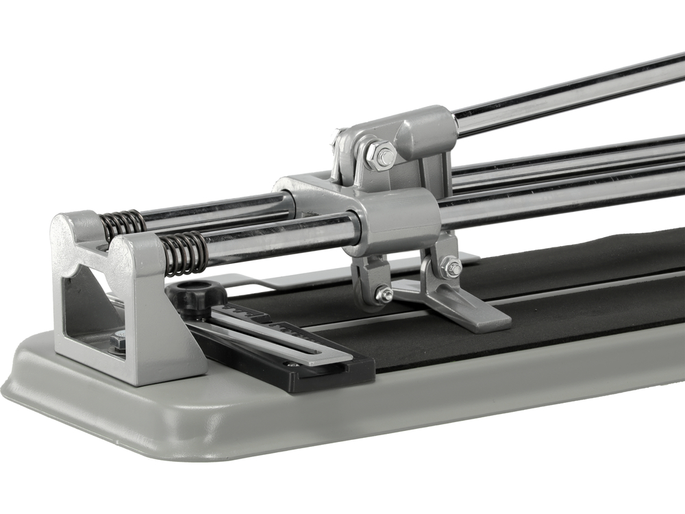 Masina de taiat plăci ceramice de foarte buna calitate cu o lungime maxima de taiere de 600 mm, cu baza stabila din tabla groasa de otel, care este acoperit cu un strat de micro-cauciuc tehnic. Raportorul mobil montat pe blat permite tăierea plăcilor la orice unghi. Dispozitivul este echipat cu o roată de tăiere cu dimensiuni de 22 mm realizată din carburi cimentate special întărite, montata pe două ghidaje paralele care permit o tăiere stabilă și precisă.