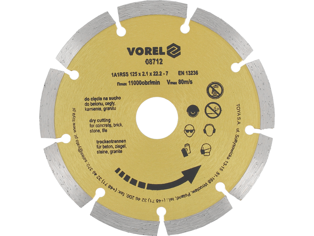 - 08712 - DISC DIAMANTAT CU SEGMENTE 125MM - Vorel - Disc diamantat pentru polizor unghiular echipat cu segmente înalte de 7mm. Proiectat pentru funcți
