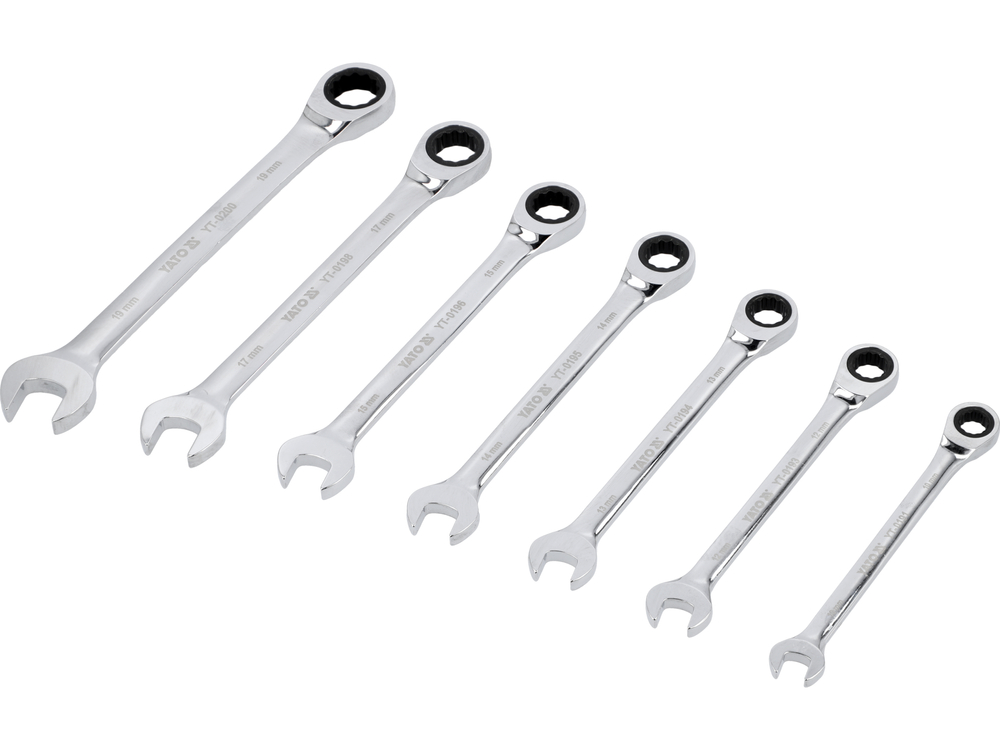 - YT-0208 - SET CHEI COMBINATE CU CLICHET 10-19MM 7 BUC - Yato - Set chei combinate cu clichet 7 piese 10-19mm. Realizate din oțel CrV de înaltă cali