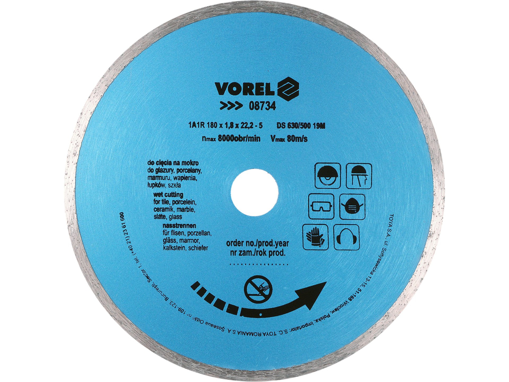 • 08734 - DISC DIAMANTAT 180MM - Vorel - Disc diamantat pentru polizor unghiular echipat cu un segment continuu înalt de 5 mm. Proiectat pentru funcțio