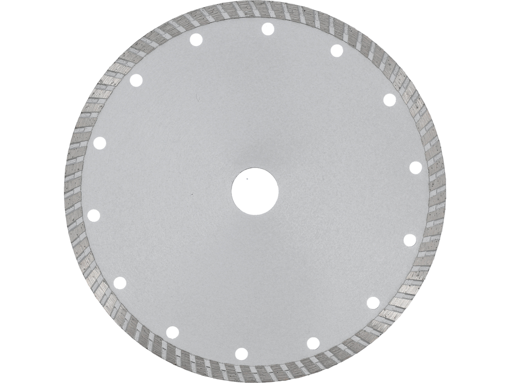 Disc diamantat pentru polizor unghiular, echipat cu un segment turbo continu de 7 mm înălțime. Proiectat pentru funcționarea "uscata" si „umeda”. Recomandat pentru tăierea betonului, pietrei, cărămizilor și a altor materiale de construcție. Viteza maxima recomandată aproximativ 8000/min