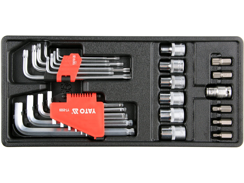 - YT-55451 - INSERȚIE DULAP SCULE 31 PIESE HEX + TORX - Yato - Insertie pentru dulap de scule care conține 31 de elemente imbusuri cu bilă chei TOR
