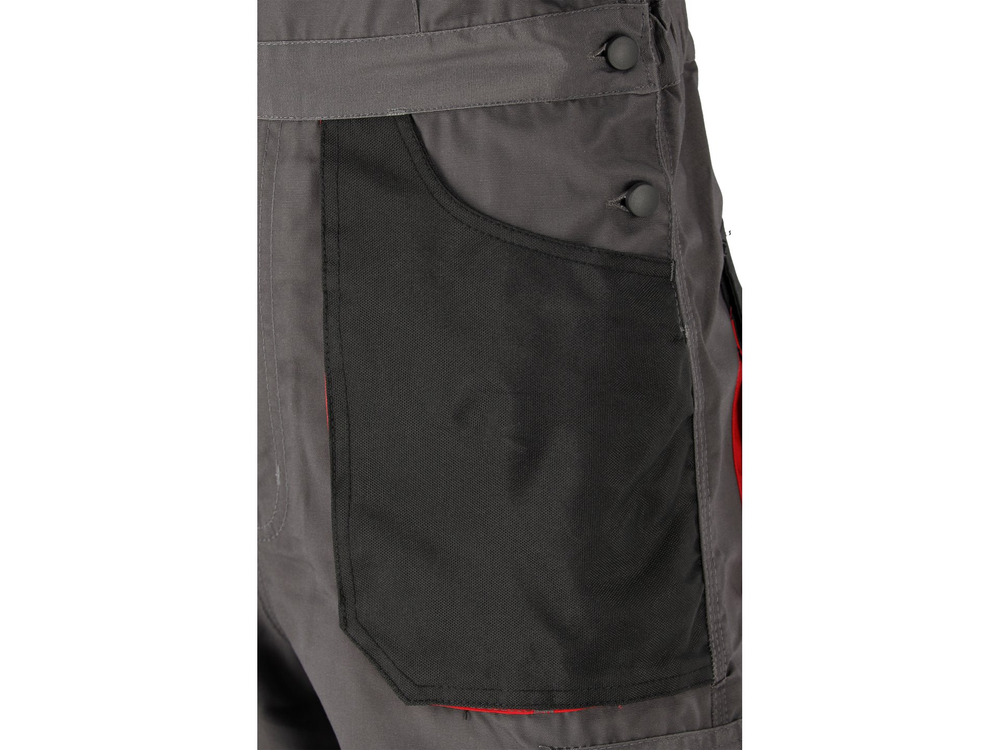 pe spate, sub talie, două buzunare mari cu clapă, fixate cu velcro, din material cu rezistență sporită la abraziune