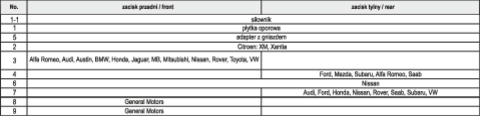 Citroën, Alfa Romeo, Audi, Austin, BMW, Honda, Jaguar, MB, Mitsubishi, Nissan, Rover, Toyota, VW, Ford, Mazda, Subaru, Saab, General Motors