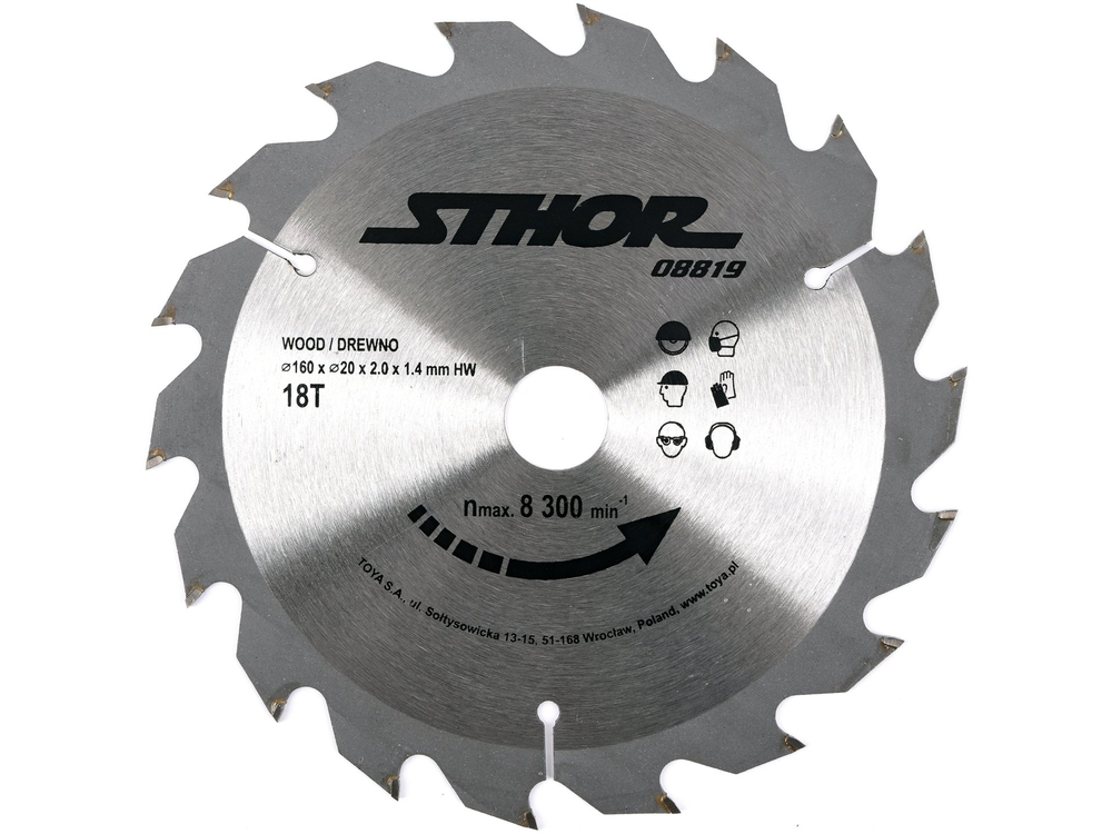 - 08819 - DISC CIRCULAR PENTRU LEMN 160X20X2MM T18 - Sthor - Disc circular wolfframcu dintii lipiti cu alamă. Unghi de lucru aproximativ 10 grade din