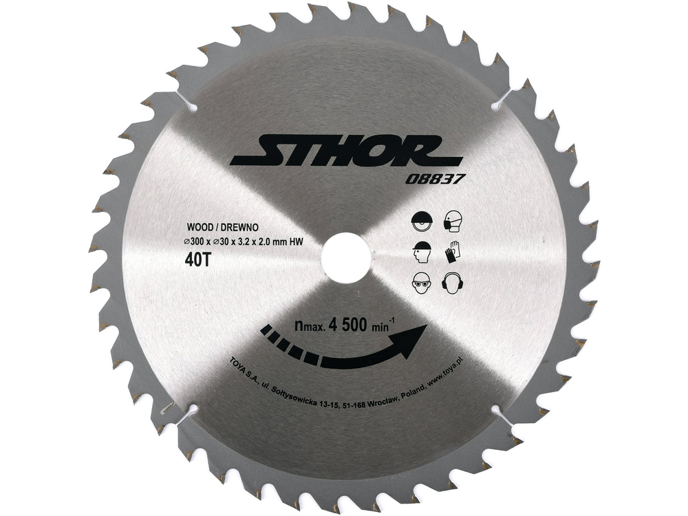 - 08837 - DISC CIRCULAR PENTRU LEMN 300X30X3.2MM T40 - Sthor - Disc circular wolfframcu dintii lipiti cu alamă. Unghi de lucru aproximativ 10 grade d