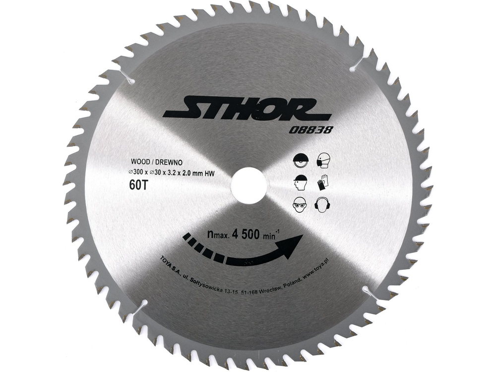 - 08838 - DISC CIRCULAR PENTRU LEMN 300X30X3.2MM T60 - Sthor - Disc circular wolfframcu dintii lipiti cu alamă. Unghi de lucru aproximativ 10 grade d