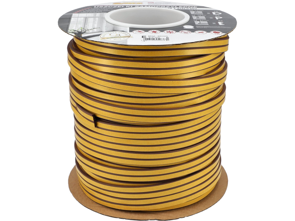 - 76765 - BANDĂ ETANȘARE TIP E150M MARO - Banda etansare pentru ferestre și uși tip E de culoare maro. Dimensiuni 9x4.0mm. Ambalat pe tambur lungime
