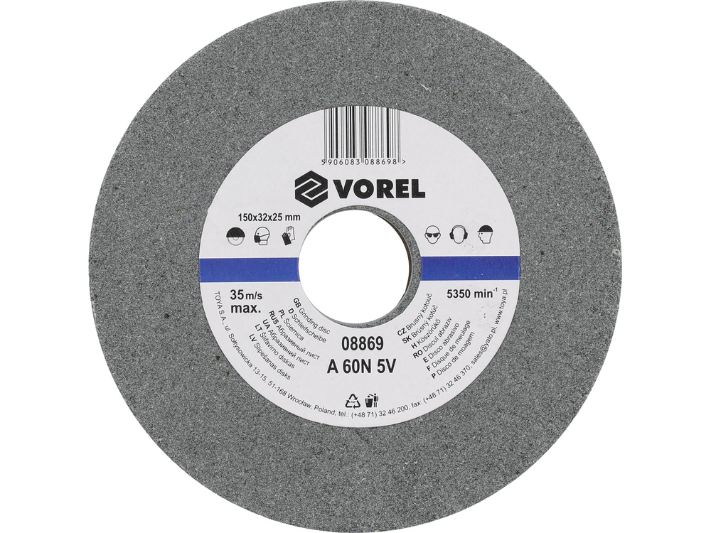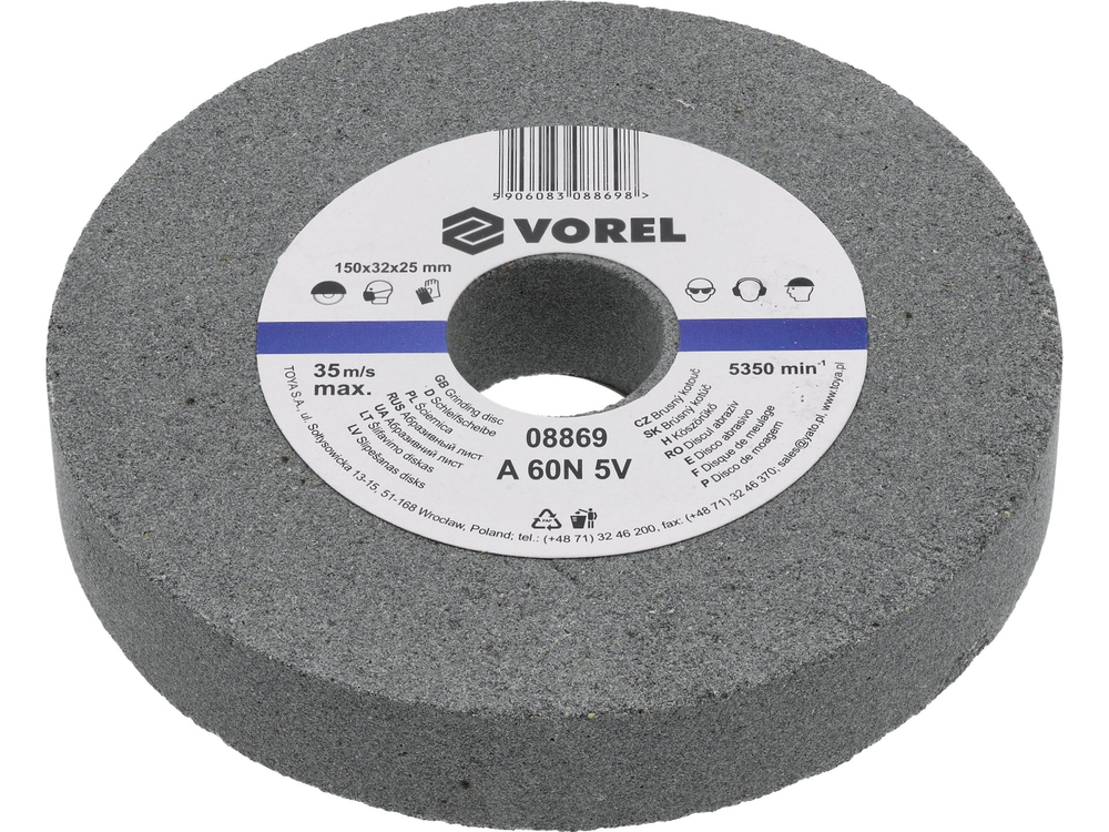 - 08869 - DISC ABRAZIV PENTRU POLIZOR DE BANC 150X32X25MM - Vorel - Disc de ceramică pentru polizorul de banc fabricat din corindon. Folosite pentru șl