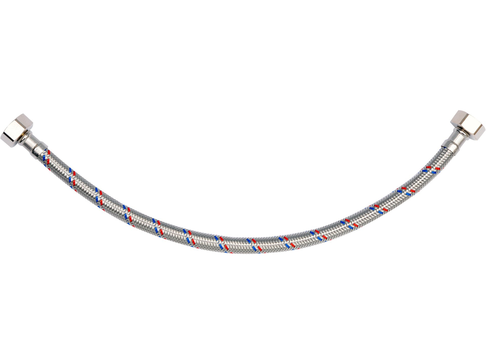 - 71801 - RACORD FLEXIBIL F/F 1/2 1/2 400MM - Furtun de conectare flexibil din împletitură de oțel inoxidabil. Este destinat apei calde și reci. Are