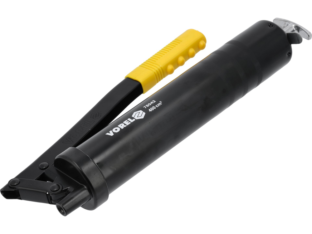 - 78042 - PISTOL DE GRESAT 400CM3 - Pistol de gresat 400 ml cu furtun. Capacitate rezervor cu unsoare de 400 ml. Poate fi încărcat printr-un cartuș de