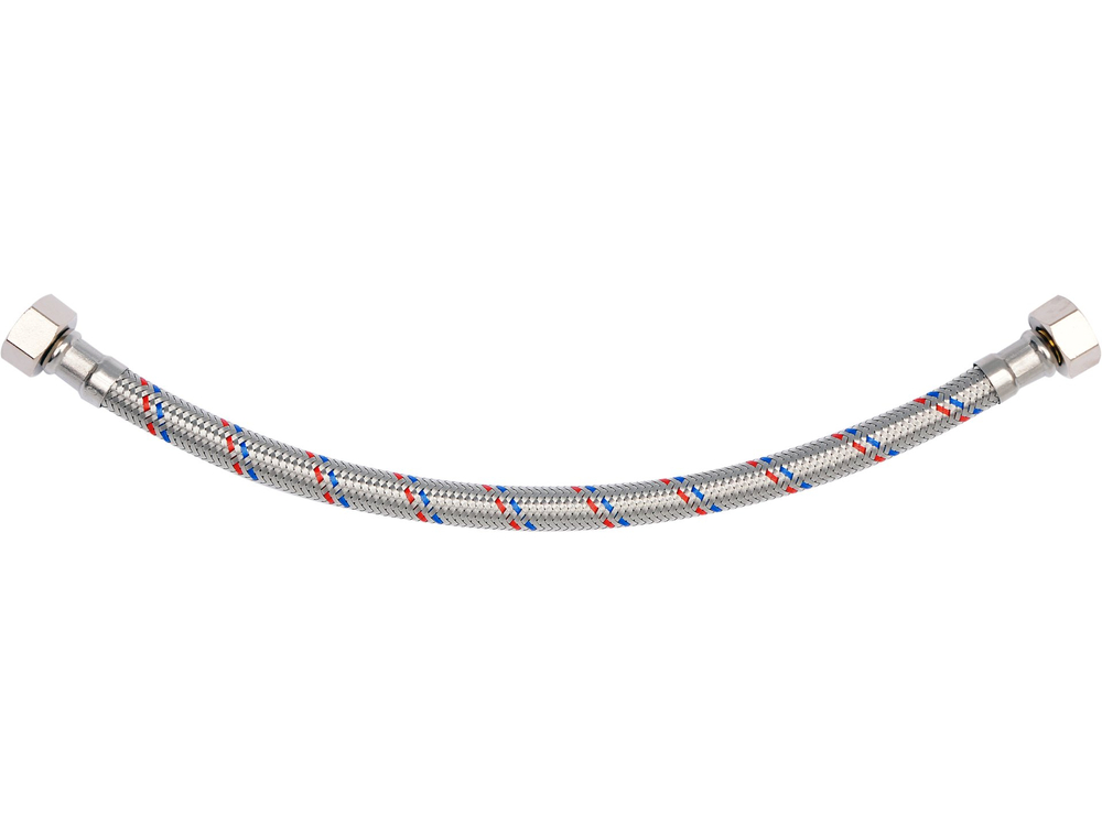 - 71814 - RACORD FLEXIBIL F/F 3/8 3/8 300MM - Furtun de conectare flexibil din împletitură de oțel inoxidabil. Este destinat apei calde și reci. Are