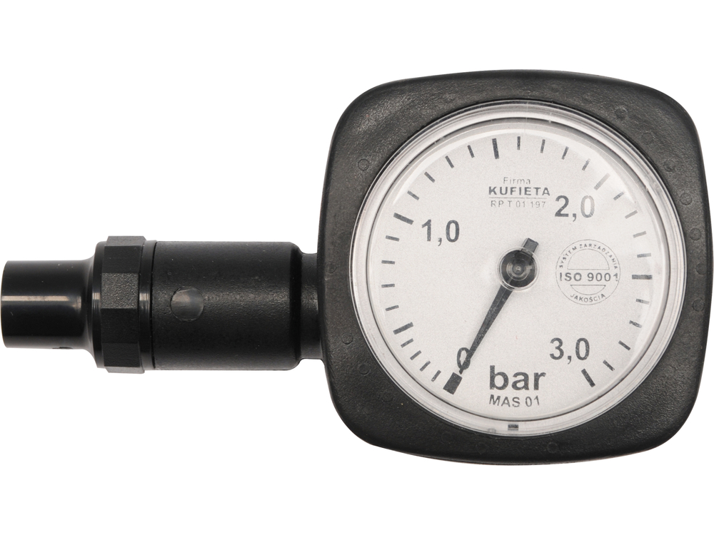 - 82611 - MANOMETRU PENTRU ROTI - Manometru cu ceas în carcasă din plastic. Interval de măsurare 05-3 bar.