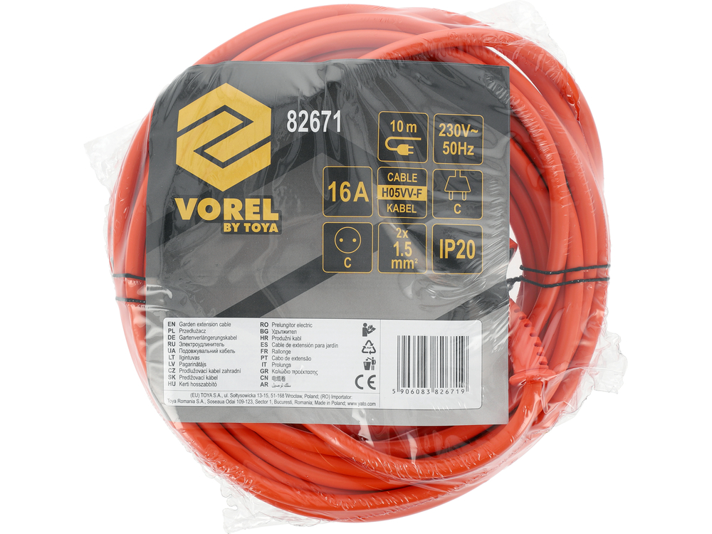 - 82671 - PRELUNGITOR 10M - Prelungitor de 10 m 2x1 mm² secțiune transversală a firelor. Grad de protecție IP20. Puterea maximă a dispozitivului conect