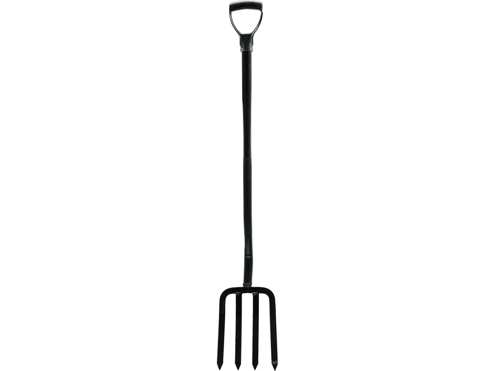 Furca tradiționala pentru grădinărit pentru multe aplicații, de exemplu, săparea, încărcarea, răsturnarea. Patru dinți de oțel plat, ascuțiți. Montat pe un ax metalic profilat  cu un mâner din plastic DY.