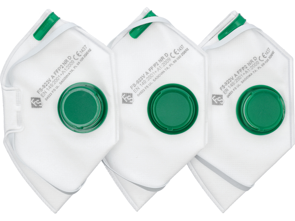 Masca cu valva, cu clasa de protecție P2. Proiectat pentru protecția respiratorie împotriva prafurilor, a aerosolilor cu particule solide și a aerosolilor lichizi de până la 4 x NDS. Ele sunt utilizate pe scară largă în lucrările de renovare și construcție, precum și în industria alimentară, lemnului, agriculturii și materialelor de construcții. Pachetul conține 3 bucăți