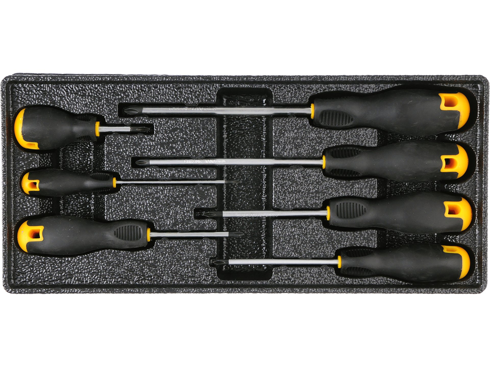 Dulap de scule echipat VOREL. Are 6 sertare echipate cu 12 module din plastic.