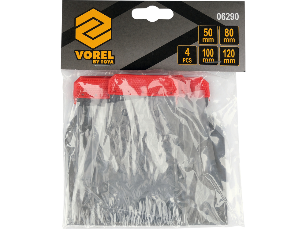 - 06290 - SET ȘPACLURI INOX - 4 BUC - Vorel - Un set de spatule dreptunghiulare. Confecționată din tablă metalică elastică terminată cu mâner din plas