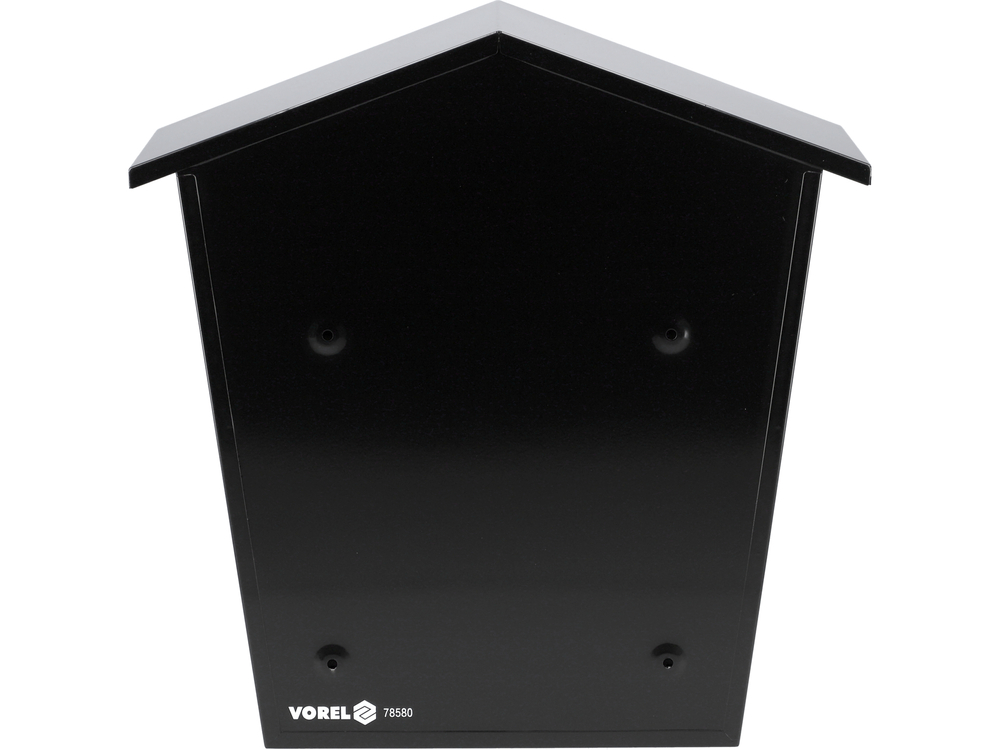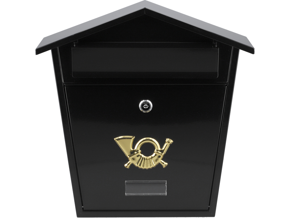Cutie postala cu dimensiuni 380x320x105mm. Fabricata din tablă de oțel grosime de 0,6 mm, zincata, culoare negru. Cutia are o deschidere în față cu un capac de protecție. Partea frontală are un panou din plastic cu posibilitatea de a plasa o placă de identificare cu adresa sau numele. Ușa din față este prevazuta cu incuietoare. Setul include 2 chei. Partea din spate are găuri de montaj. Greutate netă 2,15 kg