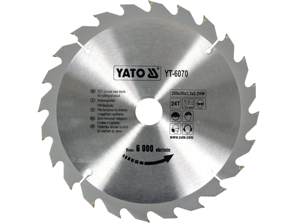 - YT-6070 - DISC FIERĂSTRĂU CIRCULAR PENTRU LEMN 250X24X30MM - Yato - Pentru tăierea lemnului a panourilor pe bază de lemn și a materialelor plastice.