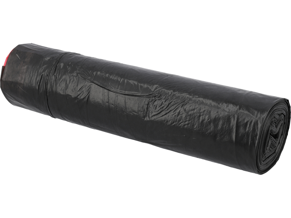 Saci pentru deșeuri de 60 l cu bandă, Vorel. Articolul este fabricat din folie LDPE de 0,030 mm grosime. Lățimea pungii este de 0,60 m, înălțimea de 0,72 m. Un cordon de tragere special montat, facilitează legarea sacului. Produsul face posibilă ambalarea majorității deșeurilor menajere ușoare.