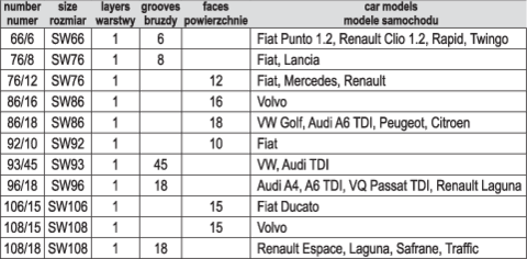 klucz nasadowy x13 (66/6F, 76/8F, 76/12F, 86/16F, 86/18F, 92/10F, 93/45F, 96/18F, 106/15F, 108/15F, 108/18F), klucz do filtra oleju (Ø65-120 mm),