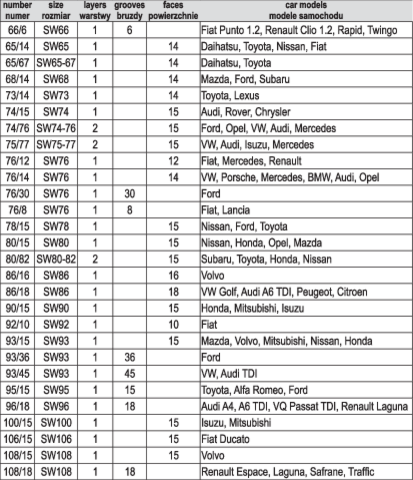 66/6GROOVE, 76/30GROOVE, 76/8 GROOVE, 93/36 GROOVE, 93/45GROOVE, 95/15GROOVE, 96/18GROOVE, 108/18GROOVE, 65/14TH, 65/67TH, 68/14TH, 73/14TH, 74/15TH, 74-76/15TH, 75-77/15TH, 76/12TH, 76/14TH, 78/15TH, 80/15TH