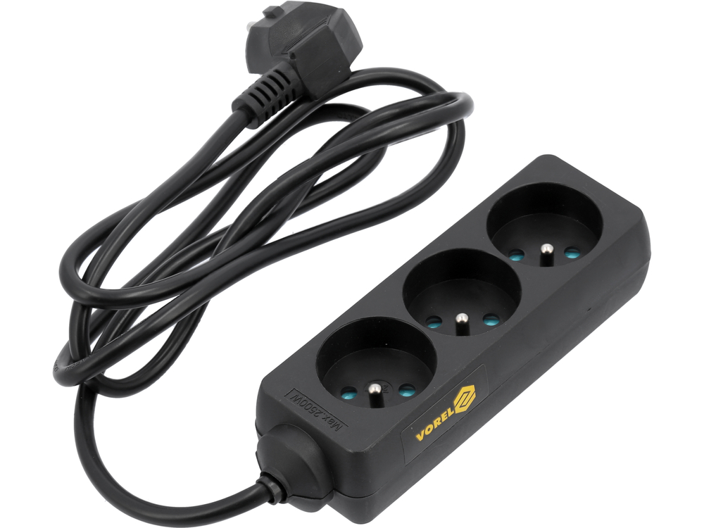 - 72615 - PRELUNGITOR 3 PRIZE CU ÎMPĂMÂNTARE 1.5M - Prelungitor clasic cu 3 prize cu impamantare - tip francez. Cablu H05VV-F 3G10mm2. 15 m lungime.