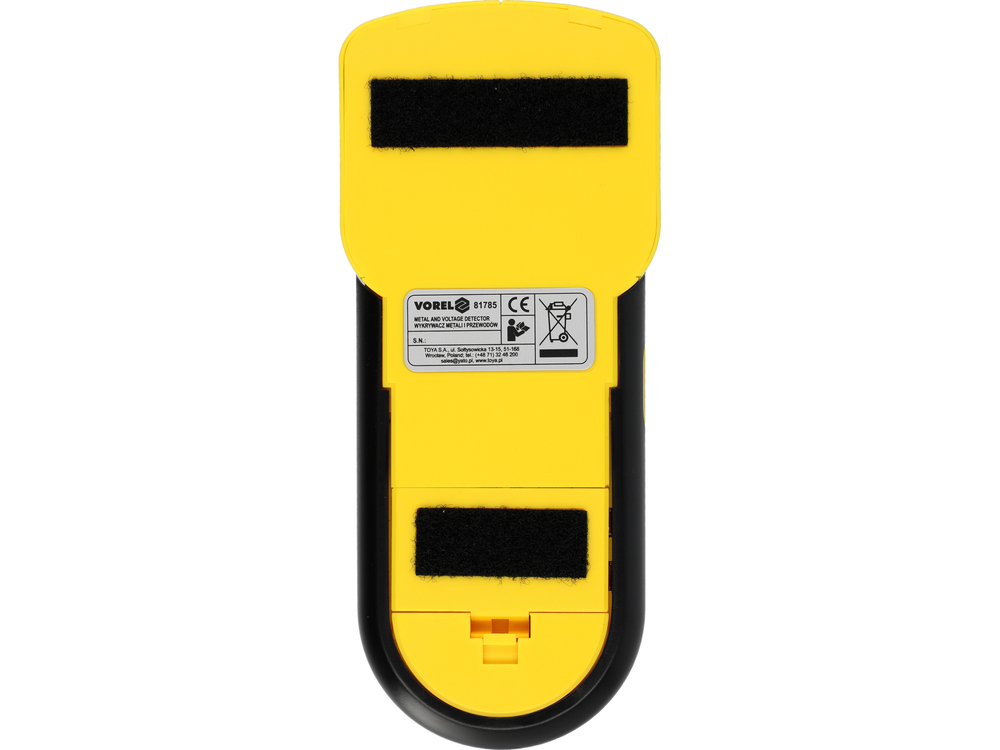 Detectorul poate detecta fire, elemente metalice și grinzi de lemn situate în pereți. Datorită afișajului ușor de citit și funcționării ușoare, este posibilă detectarea rapidă și precisă a acestor elemente. Dimensiunea mică și puterea bateriei asigură mobilitate ridicată a detectorului. Detectorul este livrat complet și nu necesită asamblare. DATE TEHNICE - Tipul obiectelor detectate: lemn, metal, fire sub tensiune (AC) Domeniu de detecție: - lemn [mm] 19 - metal [mm] 38 - fire sub tensiune (AC) [mm] 50 - 9V DC alimentare (6F22) - Temperatura de funcționare [OC] +5 ÷ +40 - Dimensiuni [mm] 180 x 75 x 30 - Greutate [kg] 0,17