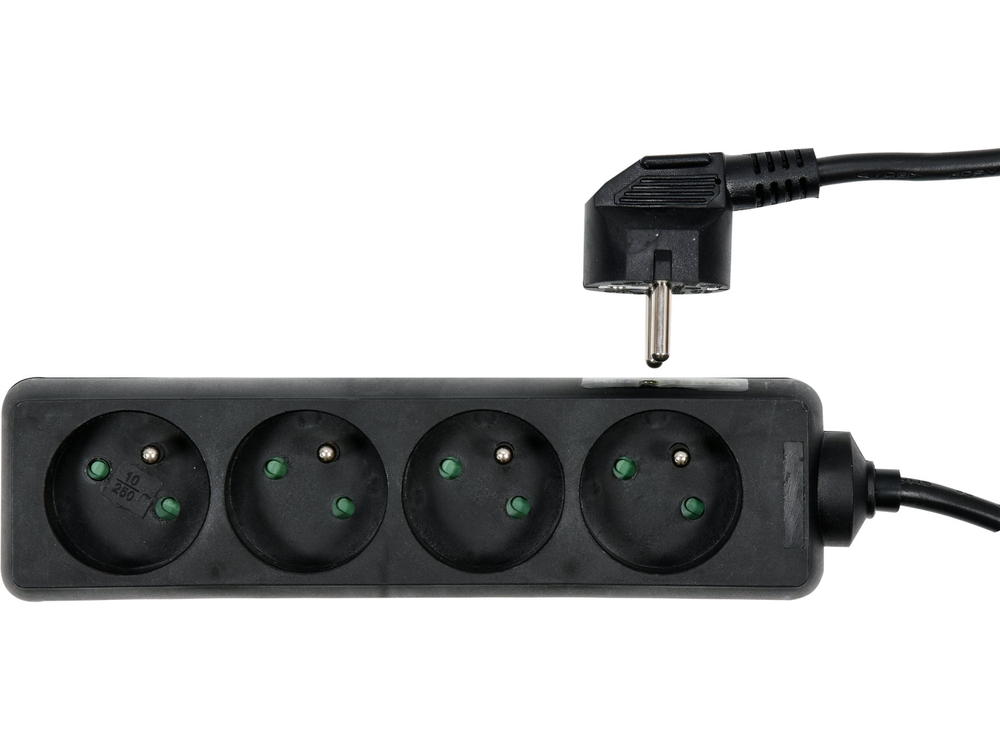 - 72621 - PRELUNGITOR 4 PRIZE CU ÎMPĂMÂNTARE 3M - Prelungitor cu 4 prize. Carcasă cu priză din plastic culoare neagră.