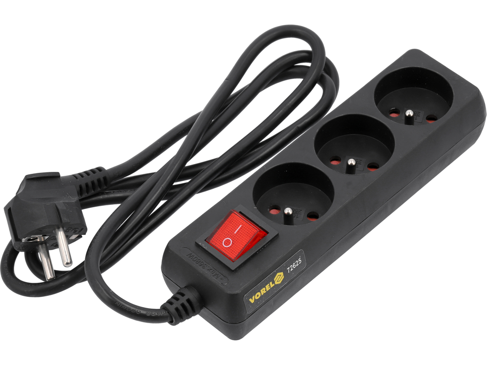 - 72625 - PRELUNGITOR CU ÎNTRERUPĂTOR 3 PRIZE CU ÎMPĂMÂNTARE 1.5M - Prelungitor clasic cu comutator si 3 prize cu impamantare. Cablu H05VV-F 3G10mm2.