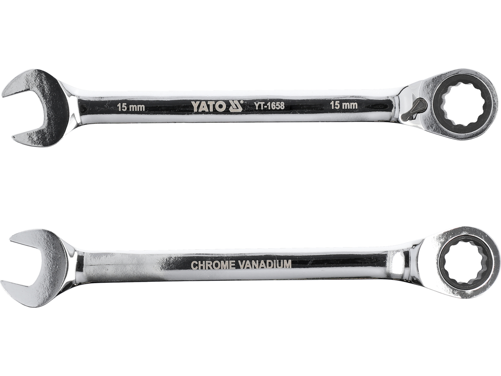 • YT-1658 - CHEIE COMBINATĂ CU CLICHET 15MM - Yato - Cheie combinata cu clichet mecanism 72 dinti lungime totala 200mm