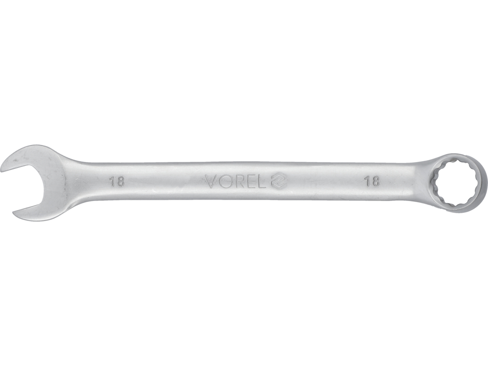 - 51683 - CHEIE COMBINATĂ SATINATĂ CR-V 18MM - Cheie combinată Vorel 51683 de 18 mm fabricată din oțel crom vanadiu crV. Cheie forjată calibrată per