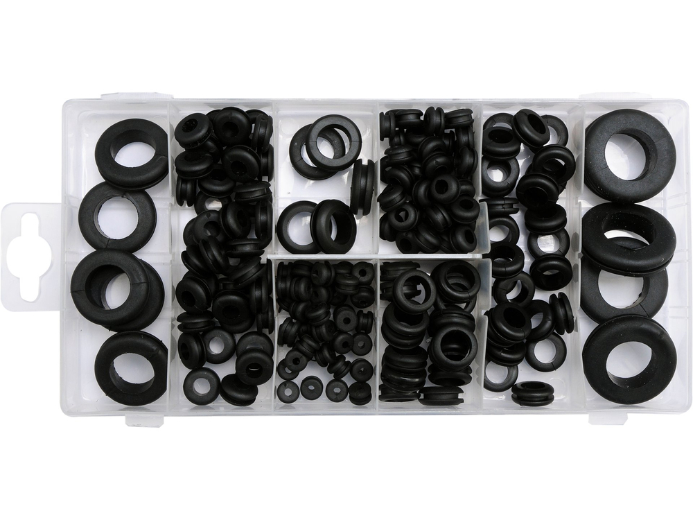 Set garnituri de cauciuc contine 180 de piese de diferite dimensiuni. Toate ambalate într-o cutie din plastic cu separatoare, care asigură ordinea și rapiditate in gasirea dimensiunii dorite.