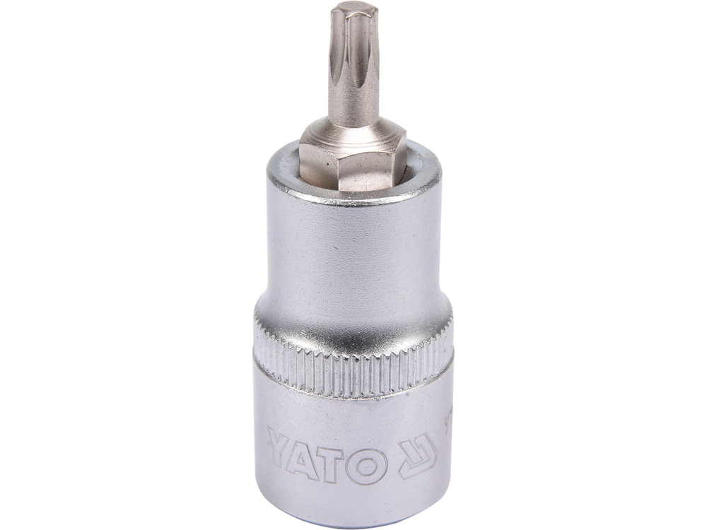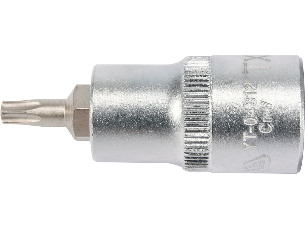 Cheie TORX cu adaptor 1/2 ", mărime T27, lungime, 55mm, fabricat din otel CrV6150, iar tija din oțel AISI S2 și acoperit cu un strat de nichel.