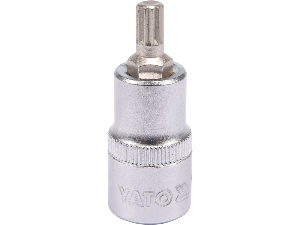 Cheie SPLINE cu adaptor 1/2 ", mărime M8, lungime, 55mm, fabricat din otel CrV6150, iar tija din oțel AISI S2 și acoperit cu un strat de nichel.