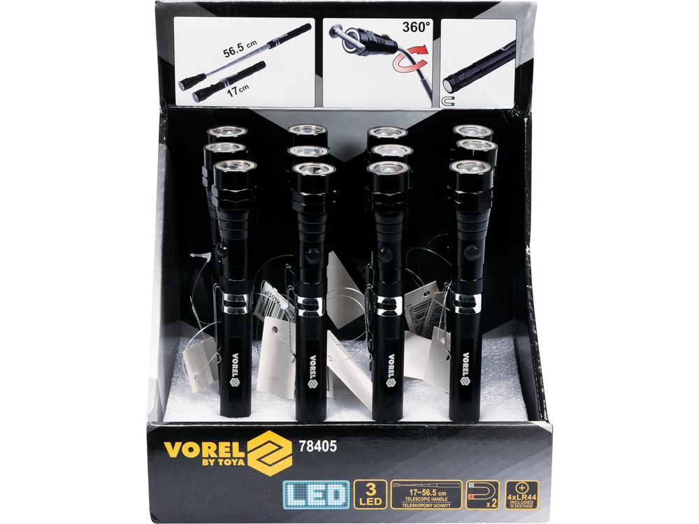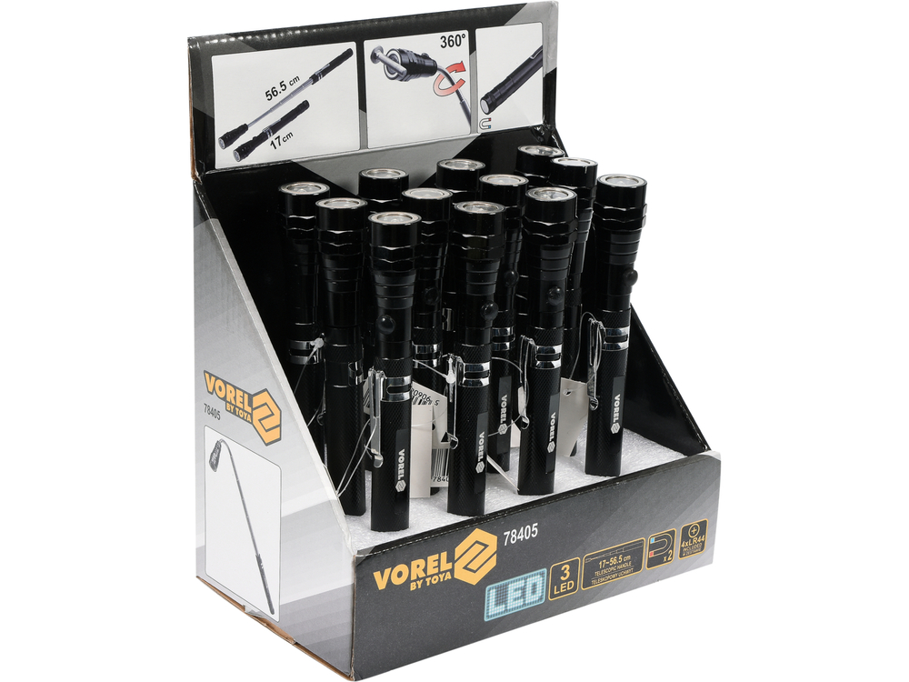 - 78405 - TELESCOP MAGNETIC CU LED 17-565CM - 78405 este o tija telescopică din aluminiu cu un magnet și cu funcție de lanternă utilă într-un atelier