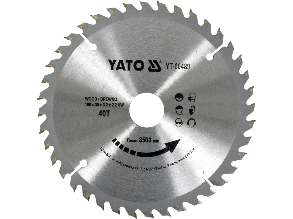- YT-60489 - DISC CIRCULAR LEMN 190X30X3.2MM 40 DINȚI - Yato - Pentru tăierea lemnului a panourilor pe bază de lemn și a materialelor plastice.