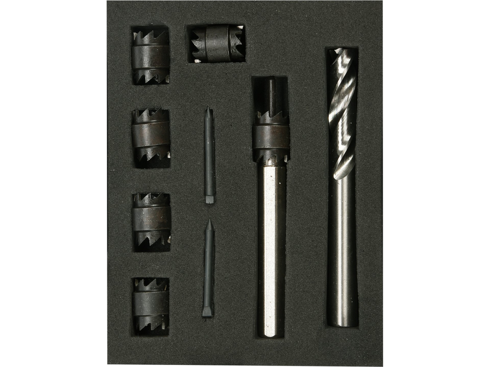 Set profesionist conceput pentru îndepărtarea rapidă a punctelor de sudura. Include 6 tăietoare cu suprafata dublă de actiune, un mâner de prindere, 3 șuruburi de fixare și un burghiu special HSS de 8 mm.