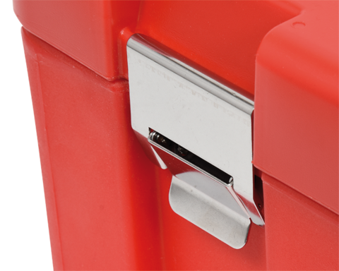 Manipularea recipientului este facilitată de două adâncituri speciale și patru incuietori din oțel inoxidabil.