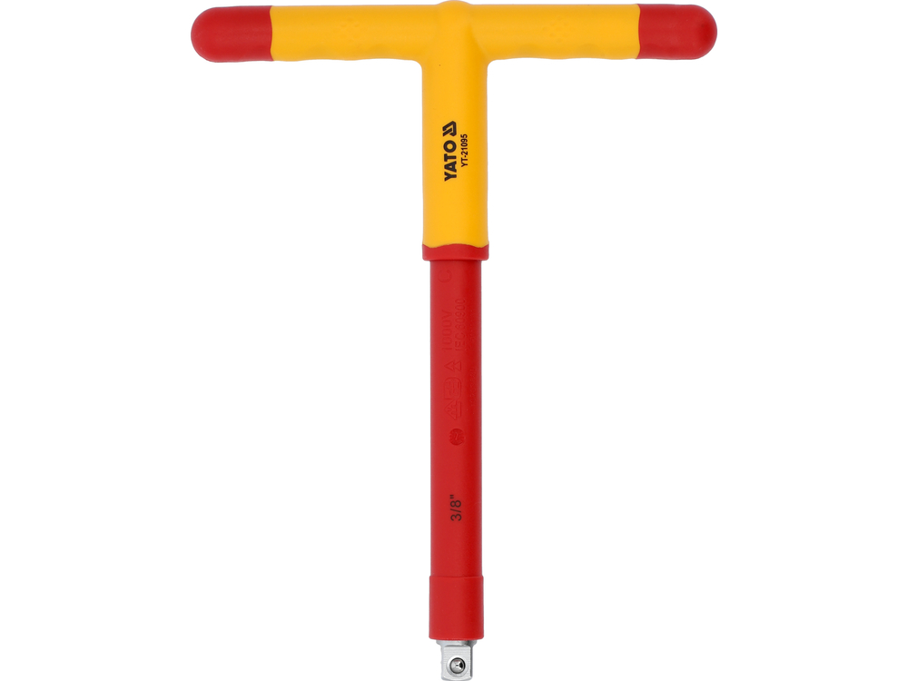 Cheie tip "T" izolata YT-21095. Fabricata din oțel durabil -crom-vanadiu, CrV. Mânerul certificat VDE multi-componentă asigură o izolație de până la 1000 V, astfel încât cheia să poată fi utilizată atunci când se lucrează la instalații de joasă tensiune.