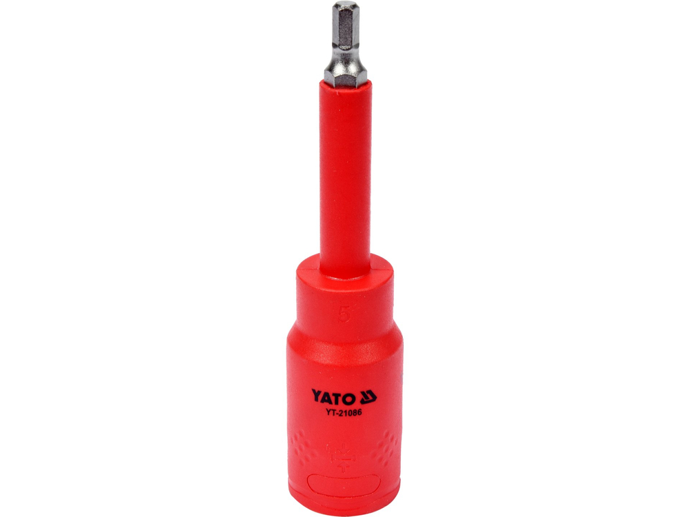 Bit Hexagonal cu adaptor 1/2", 5X120MM, YATO YT-21086. Fabricat din oțel durabil, CrV-crom-vanadiu. Mânerul multi-component VDE certificat asigură izolație de până la 1000 V, astfel încât să poată fi folosită la lucrările la instalații de joasă tensiune.