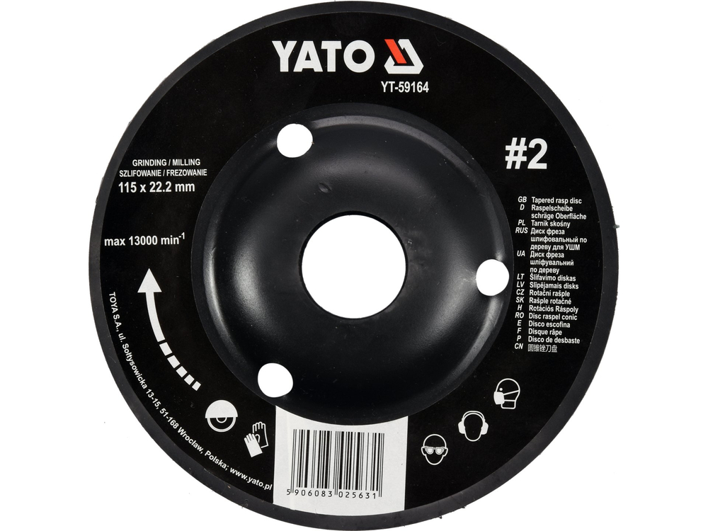 - YT-59164 - DISC RAȘPEL LEMNDEPRESAT 115X22.2MM NR2 - Yato - Diametru 115mm #2 granulatie. Diametrul gaurii de montare: 222mm Viteza maxima de rota